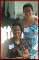 ![]() Celeste Burke accepting from Rebeca & Nikki |